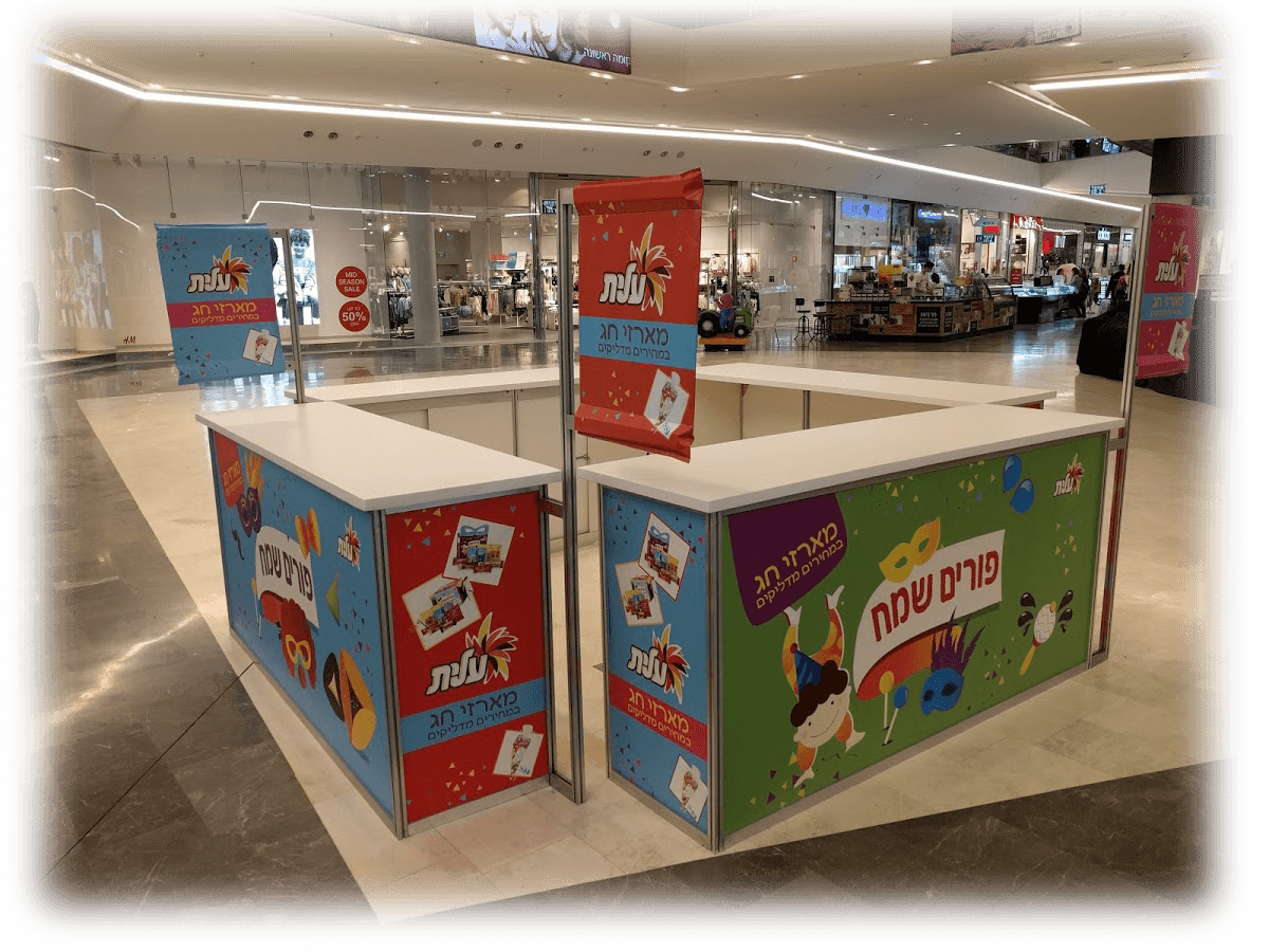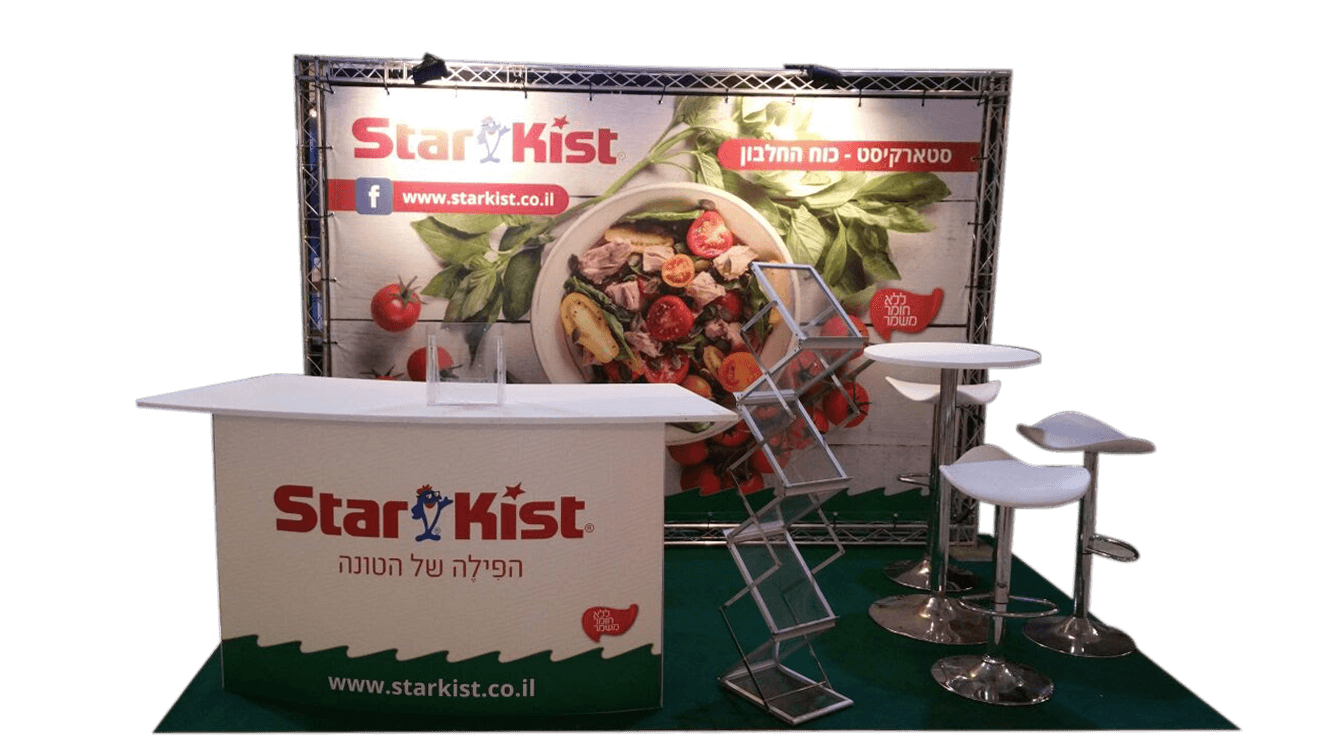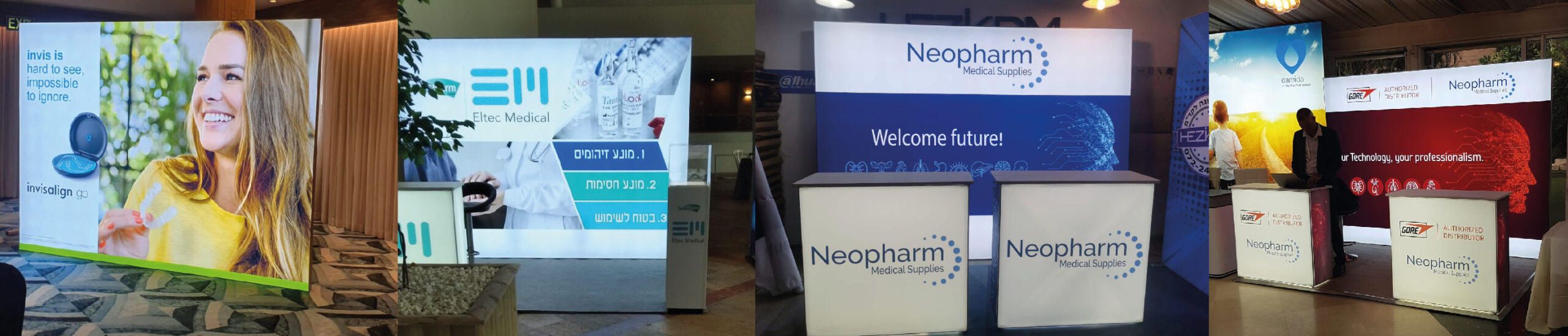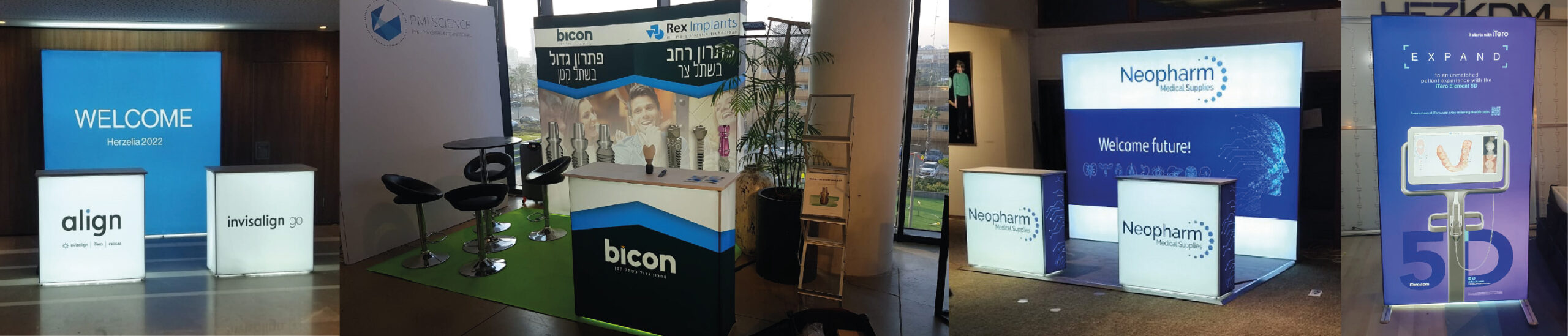 בחזי קד"מ תוכלו לשכור חבילת תצוגה או חלקים ממנה לפי הצרכים שלכם. החבילה כוללת גב ממותג, יכול להגיע גם בתוספת תאורה, שטיח בצבע שתבחרו, דלפק קבלה ממותג על בגודל שמתאים לכם, שולחן בר וכסאות בר, מתקן פרוספקטים מהודר 6 תאים ועוד. השרות כולל הדפסה איכותית וכולל הובלה התקנה ופירוק. השלמת תצוגה עם מסכי הקרנה, אמצעי קד"מ מותאמים לכנסים ותערוכות, דגלים סיניים או בסגנון טיפה, אמצעי שילוט נוספים.